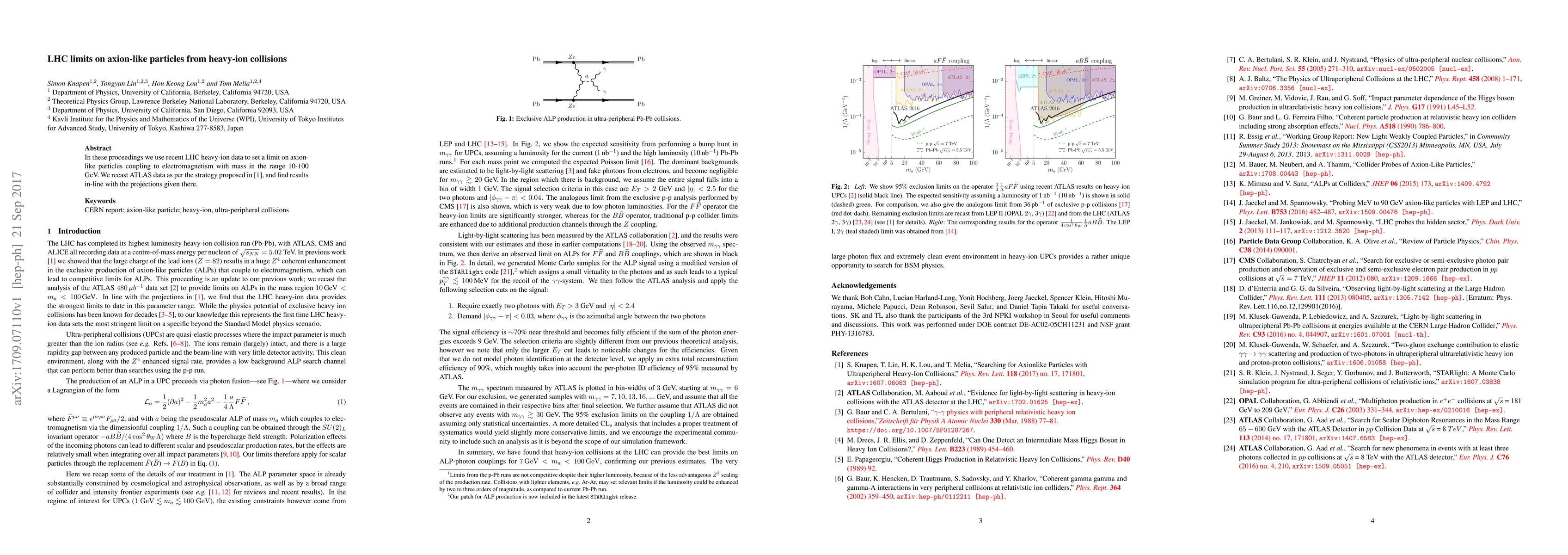 Researchers used LHC heavy-ion data to set a limit on axion-like particles with masses between 10-100 GeV, finding results consistent with previous projections.