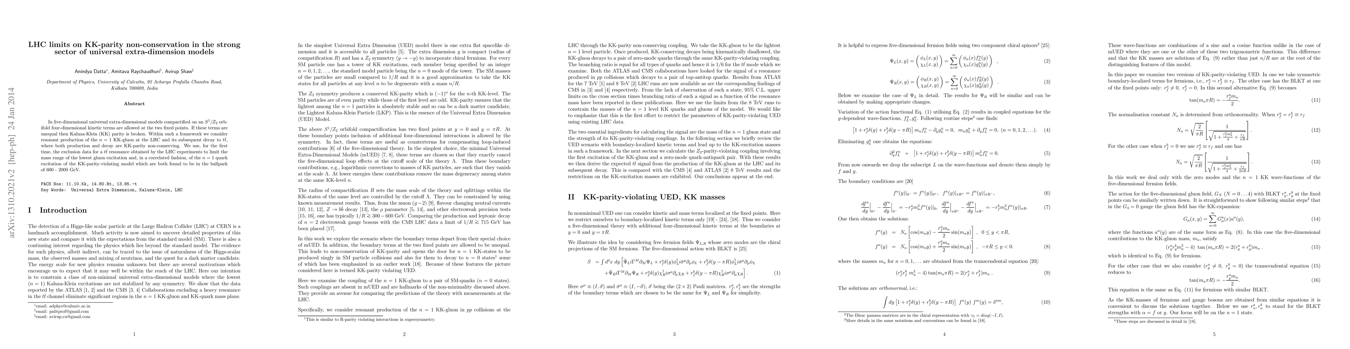 Researchers used LHC data to limit the mass ranges of quark and gluon excitations in a KK-parity-violating model, finding masses around 900 GeV.