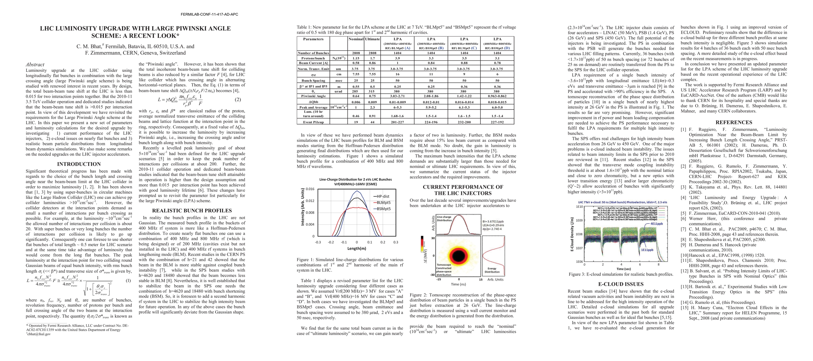 Luminosity upgrade at the LHC collider using longitudinally flat bunches in combination with the large crossing angle (large Piwinski angle scheme) is being studied with renewed interest in recent years. By design, the total beam-beam tune shift at the LHC is less than 0.015 for two interaction points together. But the 2010-11 3.5 TeV collider operation and dedicated studies indicated that the beam-beam tune shift is >0.015 per interaction point. In view of this development we have revisited the requirements for the Large Piwinski Angle scheme at the LHC. In this paper we present a new set of parameters and luminosity calculations for the desired upgrade by investigating 1) current performance of the LHC injectors, 2) e-cloud issues on nearly flat bunches and 3) realistic beam particle distributions from longitudinal beam dynamics simulations. We also make some remarks on the needed upgrades on the LHC injector accelerators.