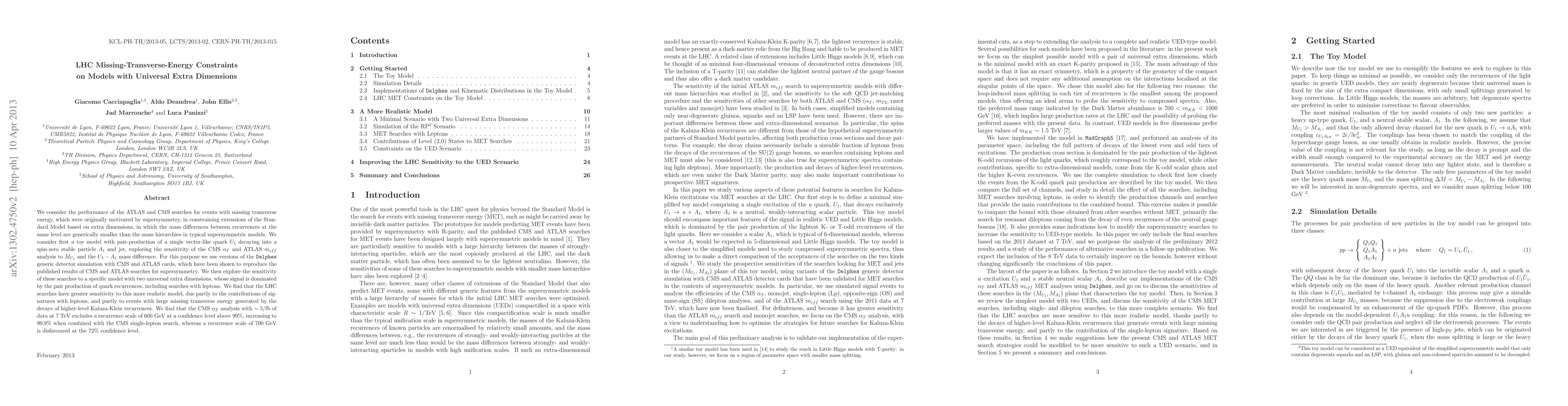 This paper examines how ATLAS and CMS searches for missing transverse energy, initially designed for supersymmetry, can constrain models with universal extra dimensions. It finds that these searches are more sensitive to models with smaller mass differences between extra-dimensional recurrences, particularly those with leptonic signatures and large missing transverse energy from higher-level Kaluza-Klein decays, effectively excluding a recurrence scale of 600 GeV at over 99% confidence.