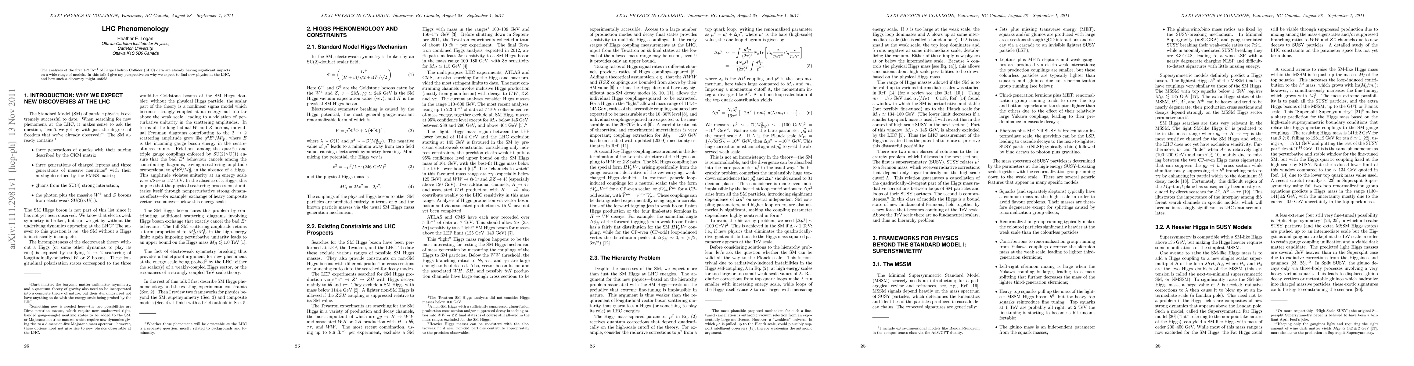 The paper presents a comprehensive review of LHC phenomenology, focusing on Higgs boson properties, their couplings, and the implications for new physics, alongside addressing the hierarchy problem through various theoretical frameworks.
