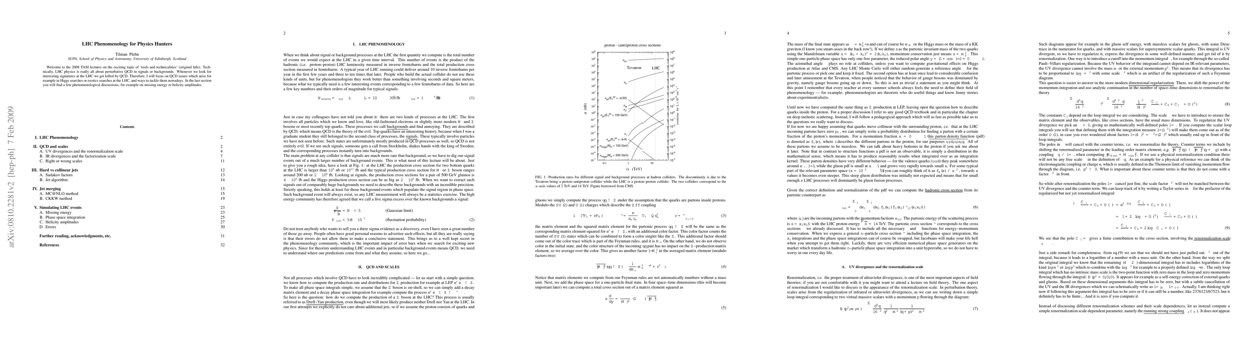 Welcome to the 2008 TASI lectures on the exciting topic of `tools and technicalities' (original title). Technically, LHC physics is really all about perturbative QCD in signals or backgrounds. Whenever we look for interesting signatures at the LHC we get killed by QCD. Therefore, I will focus on QCD issues which arise for example in Higgs searches or exotics searches at the LHC, and ways to tackle them nowadays. In the last section you will find a few phenomenological discussions, for example on missing energy or helicity amplitudes.