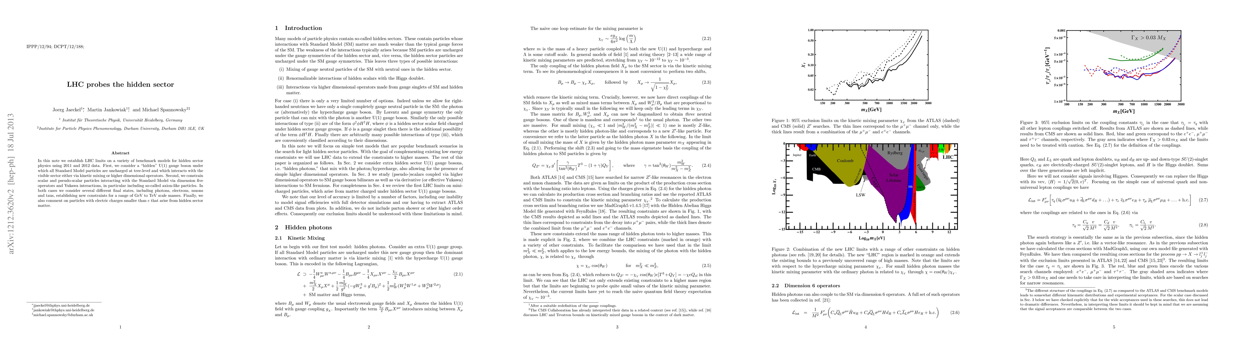 In this note we establish LHC limits on a variety of benchmark models for hidden sector physics using 2011 and 2012 data. First, we consider a "hidden" U(1) gauge boson under which all Standard Model particles are uncharged at tree-level and which interacts with the visible sector either via kinetic mixing or higher dimensional operators. Second, we constrain scalar and pseudo-scalar particles interacting with the Standard Model via dimension five operators and Yukawa interactions, in particular including so-called axion-like particles. In both cases we consider several different final states, including photons, electrons, muons and taus, establishing new constraints for a range of GeV to TeV scale masses. Finally, we also comment on particles with electric charges smaller than e that arise from hidden sector matter.