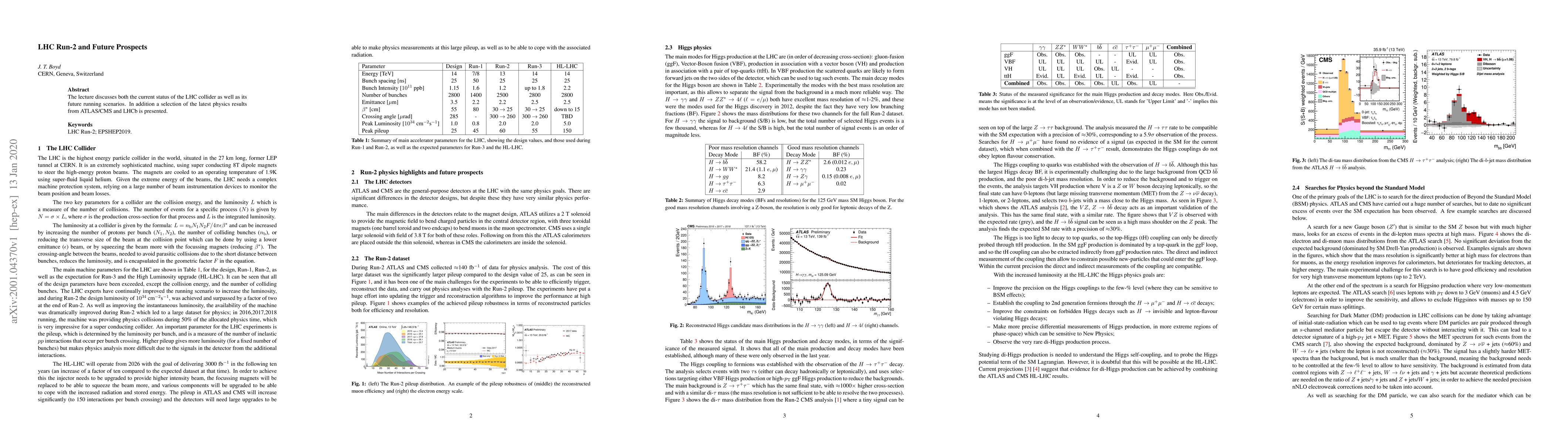 The lecture discusses both the current status of the LHC collider as well as its future running scenarios. In addition a selection of the latest physics results from ATLAS/CMS and LHCb is presented.