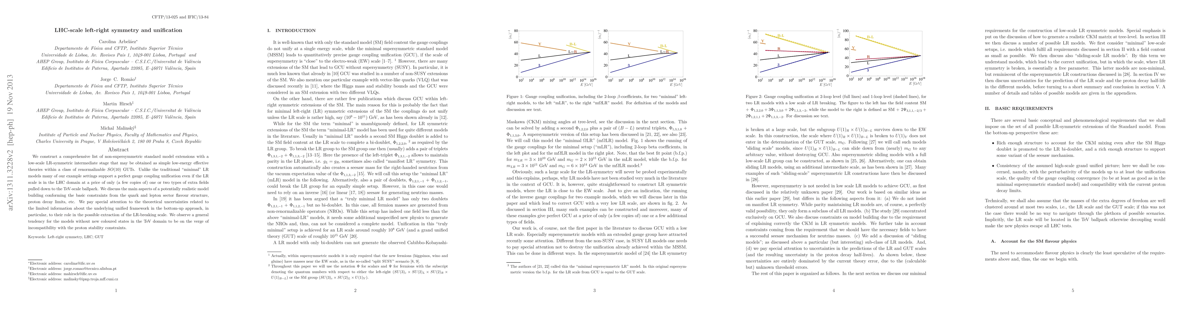We construct a comprehensive list of non-supersymmetric standard model extensions with a low-scale LR-symmetric intermediate stage that may be obtained as simple low-energy effective theories within a class of renormalizable $SO(10)$ GUTs. Unlike the traditional "minimal" LR models many of our example settings support a perfect gauge coupling unification even if the LR scale is in the LHC domain at a price of only (a few copies of) one or two types of extra fields pulled down to the TeV-scale ballpark. We discuss the main aspects of a potentially realistic model building conforming the basic constraints from the quark and lepton sector flavour structure, proton decay limits, etc. We pay a special attention to the theoretical uncertainties related to the limited information about the underlying unified framework in the bottom-up approach, in particular, to their role in the possible extraction of the LR-breaking scale. We observe a general tendency for the models without new coloured states in the TeV domain to be on the verge of incompatibility with the proton stability constraints.