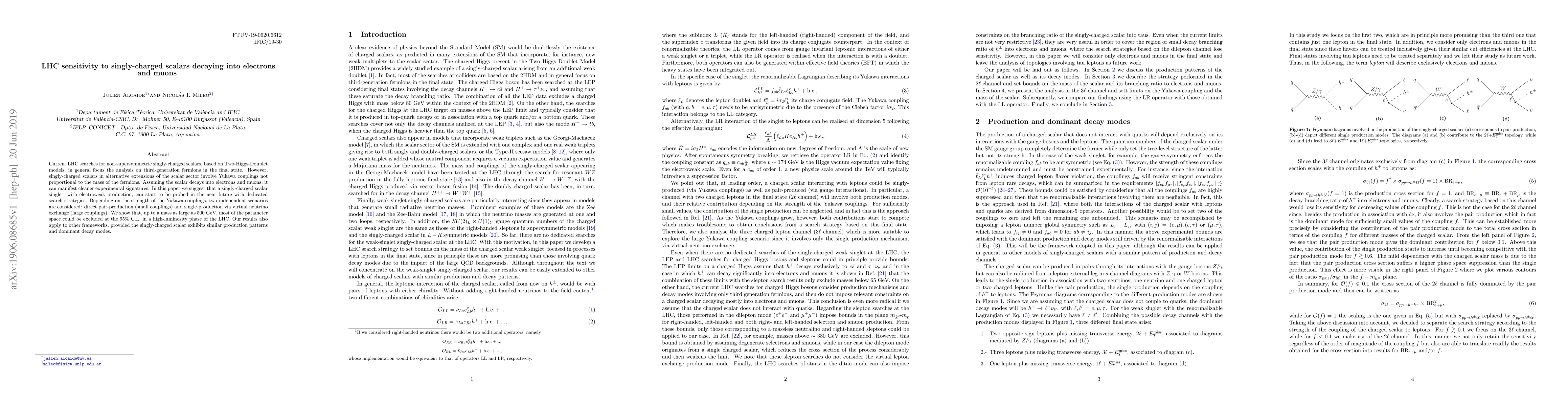 Current LHC searches for non-supersymmetric singly-charged scalars, based on Two-Higgs-Doublet models, in general focus the analysis on third-generation fermions in the final state. However, singly-charged scalars in alternative extensions of the scalar sector involve Yukawa couplings not proportional to the mass of the fermions. Assuming the scalar decays into electrons and muons, it can manifest cleaner experimental signatures. In this paper we suggest that a singly-charged scalar singlet, with electroweak production, can start to be probed in the near future with dedicated search strategies. Depending on the strength of the Yukawa couplings, two independent scenarios are considered: direct pair-production (small couplings) and single-production via virtual neutrino exchange (large couplings). We show that, up to a mass as large as 500 GeV, most of the parameter space could be excluded at the 95% C.L. in a high-luminosity phase of the LHC. Our results also apply to other frameworks, provided the singly-charged scalar exhibits similar production patterns and dominant decay modes.