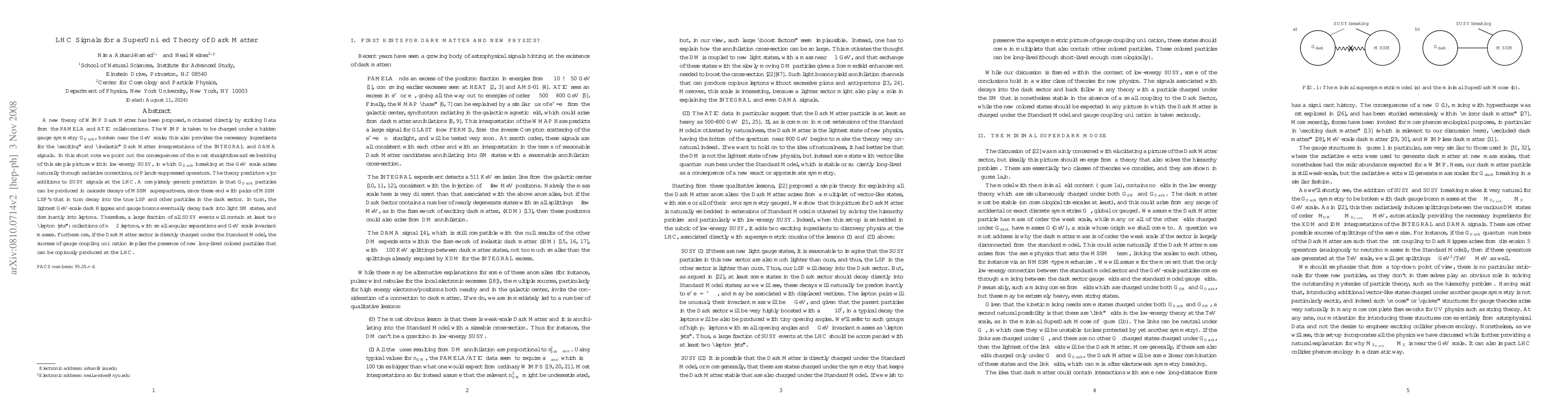 This paper proposes a new Dark Matter theory, linking it to PAMELA and ATIC data, suggesting WIMPs charged under a hidden symmetry G_Dark broken near GeV scale. It predicts LHC signals like 'lepton jets' from cascade decays of SUSY particles and potentially long-lived colored particles due to unified gauge couplings, offering testable predictions for experimental verification.