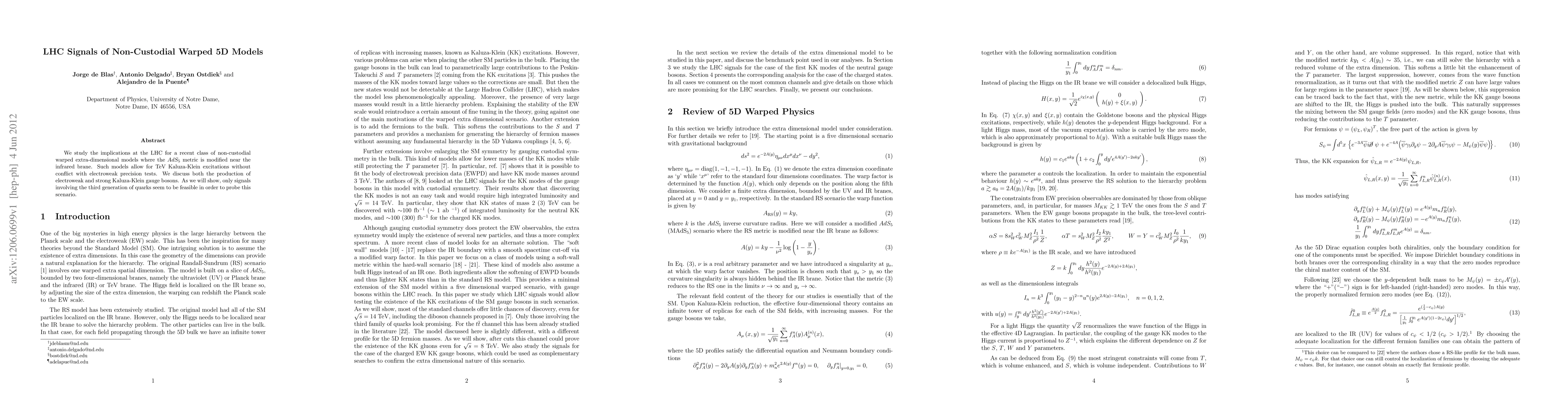 This paper investigates the Large Hadron Collider (LHC) signals of non-custodial warped 5D models, which modify the AdS_5 metric near the infrared brane, allowing for TeV-scale Kaluza-Klein excitations. The study focuses on the production of electroweak and strong Kaluza-Klein gauge bosons, concluding that third-generation quark interactions are the most feasible signals to probe this scenario.