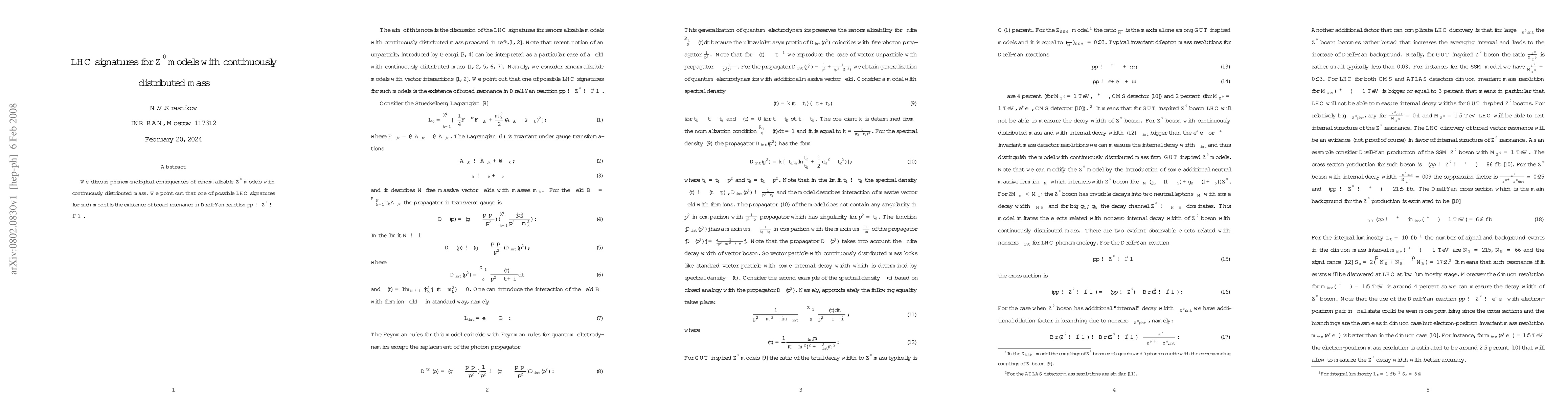 We discuss phenomenological consequences of renormalizable Z` models with continuously distributed mass. We point out that one of possible LHC signatures for such nodel is the existence of broad resonance in Drell-Yan reaction $pp \to Z^{`} \to l^+l^-$.