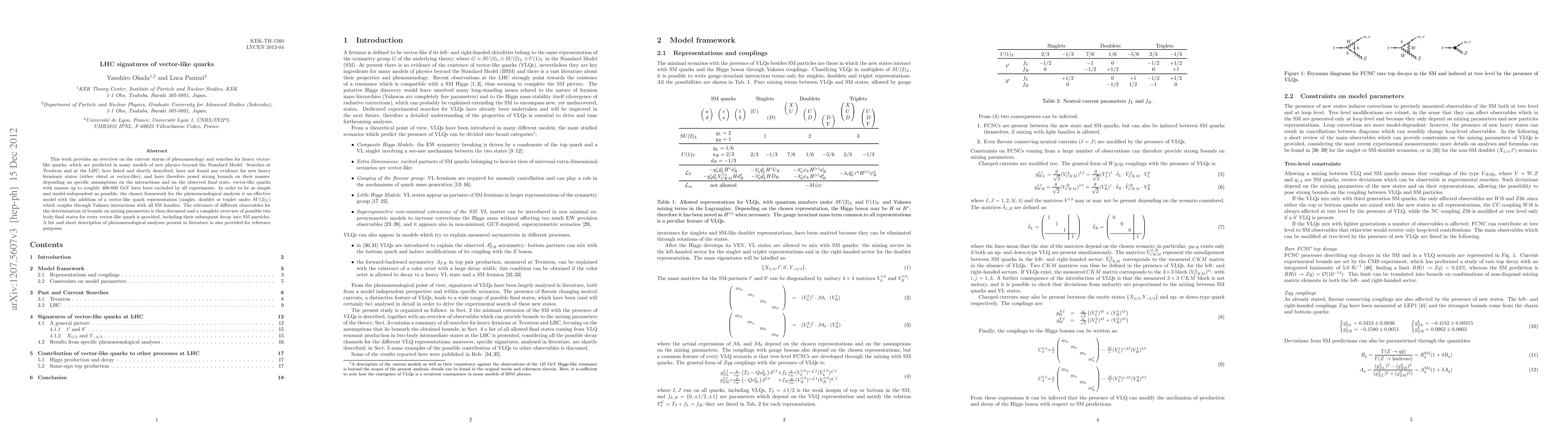 This paper reviews the phenomenology and experimental searches for heavy vector-like quarks beyond the Standard Model, concluding that current LHC and Tevatron data exclude vector-like quarks up to 600 GeV, with an effective model used to analyze mixing parameters and decay signatures.