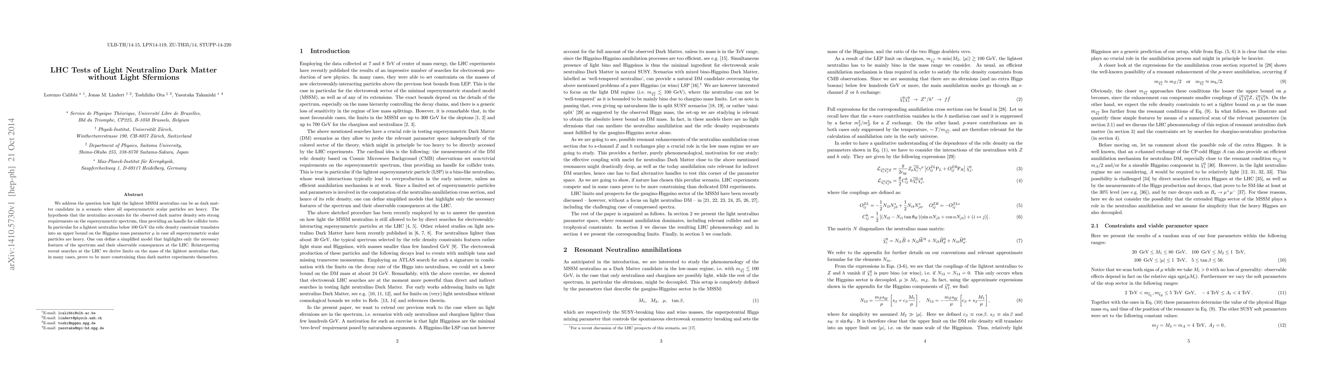 This paper explores the viability of a light MSSM neutralino as dark matter in scenarios where all supersymmetric scalar particles are heavy. It reinterprets recent LHC searches to derive stringent limits on the neutralino's mass, often more restrictive than those from dark matter experiments.