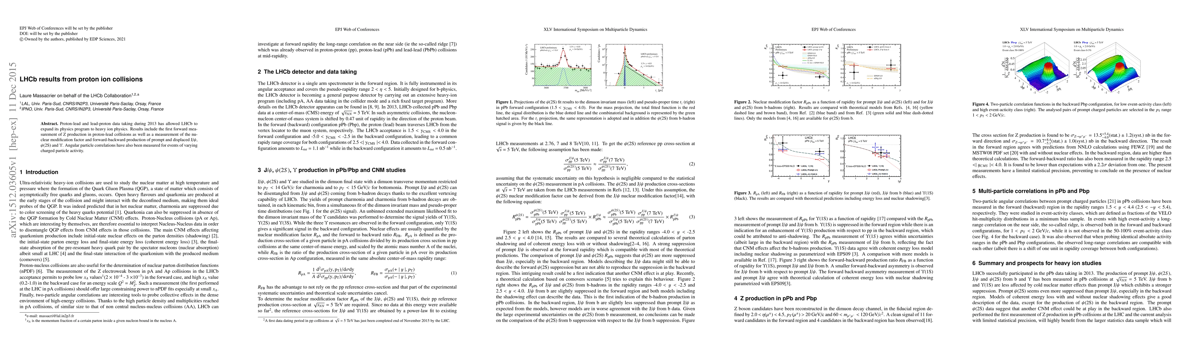The LHCb experiment has reported results from proton-lead and lead-proton collisions in 2013, including the first forward measurement of Z production and analyses of nuclear modification factors and forward-backward production of J/$\psi$, $\psi$(2S), and $\Upsilon$ mesons, alongside angular particle correlations across different event activities.