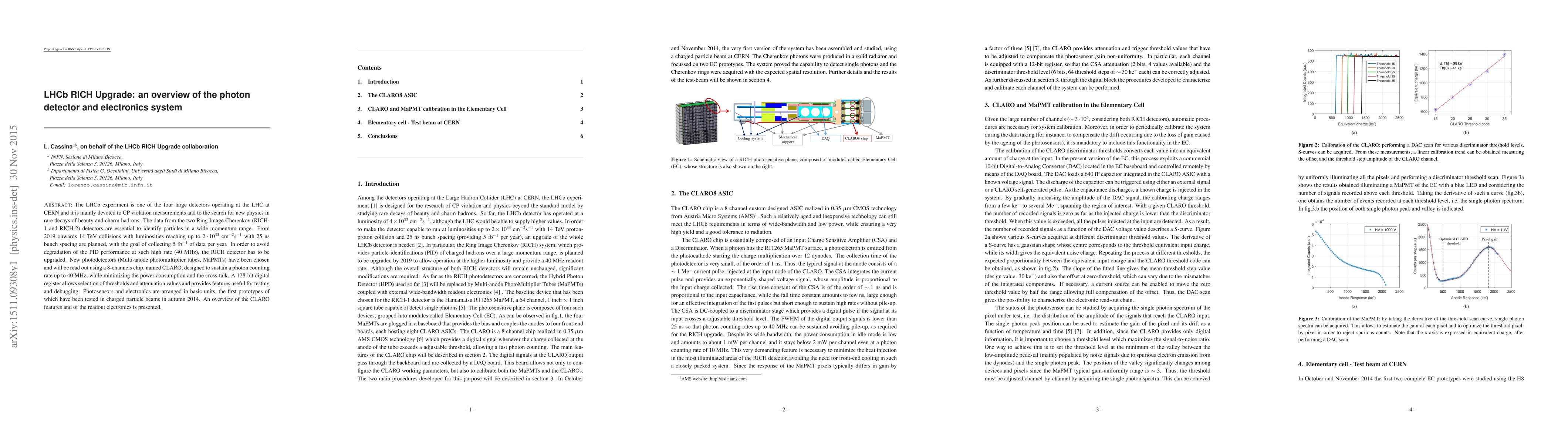 The LHCb experiment is one of the four large detectors operating at the LHC at CERN and it is mainly devoted to CP violation measurements and to the search for new physics in rare decays of beauty and charm hadrons. The data from the two Ring Image Cherenkov (RICH-1 and RICH-2) detectors are essential to identify particles in a wide momentum range. From 2019 onwards 14 TeV collisions with luminosities reaching up to $2\cdot10^{33}$ cm$^{-2}$ s$^{-1}$ with 25 ns bunch spacing are planned, with the goal of collecting 5 fb$^{-1}$ of data per year. In order to avoid degradation of the PID performance at such high rate (40 MHz), the RICH detector has to be upgraded. New photodetectors (Multi-anode photomultiplier tubes, MaPMTs) have been chosen and will be read out using a 8-channels chip, named CLARO, designed to sustain a photon counting rate up to 40 MHz, while minimizing the power consumption and the cross-talk. A 128-bit digital register allows selection of thresholds and attenuation values and provides features useful for testing and debugging. Photosensors and electronics are arranged in basic units, the first prototypes of which have been tested in charged particle beams in autumn 2014. An overview of the CLARO features and of the readout electronics is presented.
