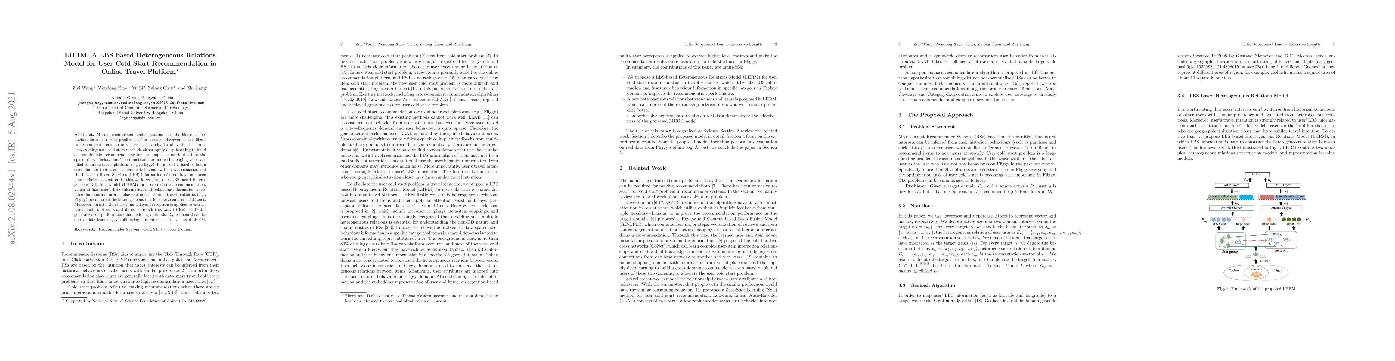 Researchers propose a new model called LHRM that uses location-based services and behavior data to improve user cold start recommendations on online travel platforms. This method outperforms existing methods in generalization performance.