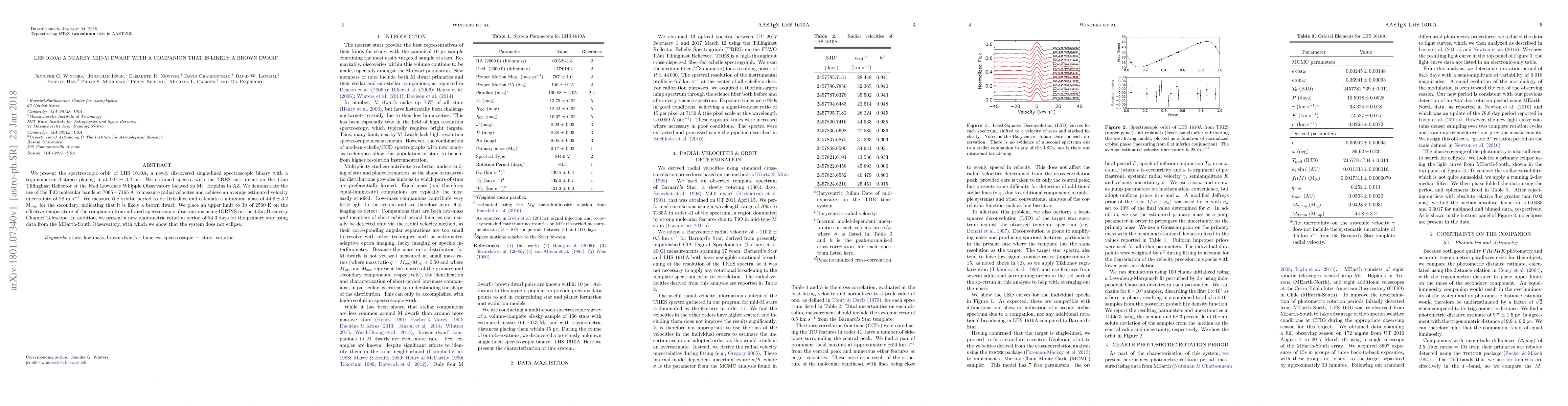 The research identifies LHS 1610A, a nearby mid-M dwarf star in a binary system with a likely brown dwarf companion. Utilizing TiO molecular bands, the team measured radial velocities with an uncertainty of 28 m/s, determining an orbital period of 10.6 days and a minimum mass of 44.8 ± 3.2 Jupiter masses for the secondary. Infrared spectroscopy set an upper limit of 2500 K for the companion's effective temperature. Additionally, a 84.3-day rotation period was found for the primary using MEarth-South data, confirming the system does not eclipse.