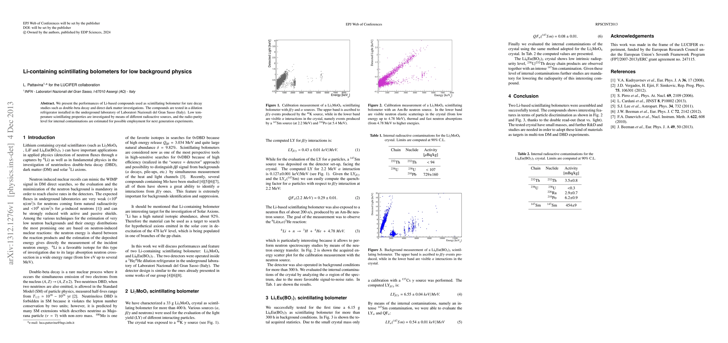 Researchers developed Li-containing scintillating bolometers for detecting rare decays like double-beta decay and dark matter. They tested the compounds at low temperatures in an underground lab to assess their radio-purity and performance.