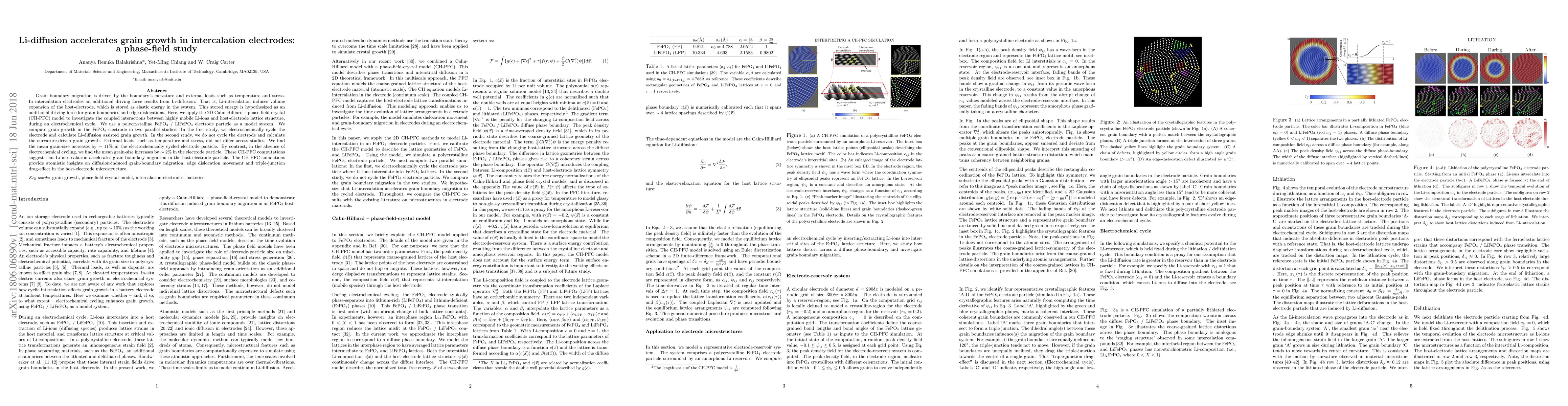 This work distinguishes itself by applying the CH-PFC method to model grain growth in intercalation electrodes, offering a multiscale perspective that combines Li-diffusion dynamics with structural transformations at the atomic level.