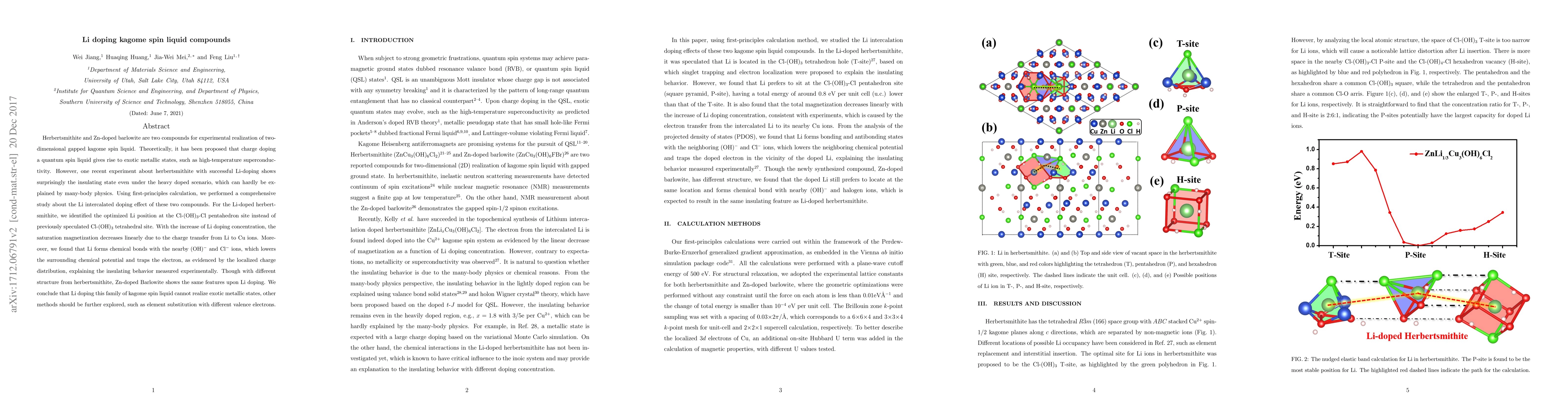 This paper investigates the effects of Li doping in Herbertsmithite and Zn-doped Barlowite, two kagome spin liquid compounds, finding that Li doping leads to insulating behavior instead of the expected metallic states. The study identifies the optimized Li position and explains the insulating nature through localized charge distribution and chemical bonding with surrounding ions.