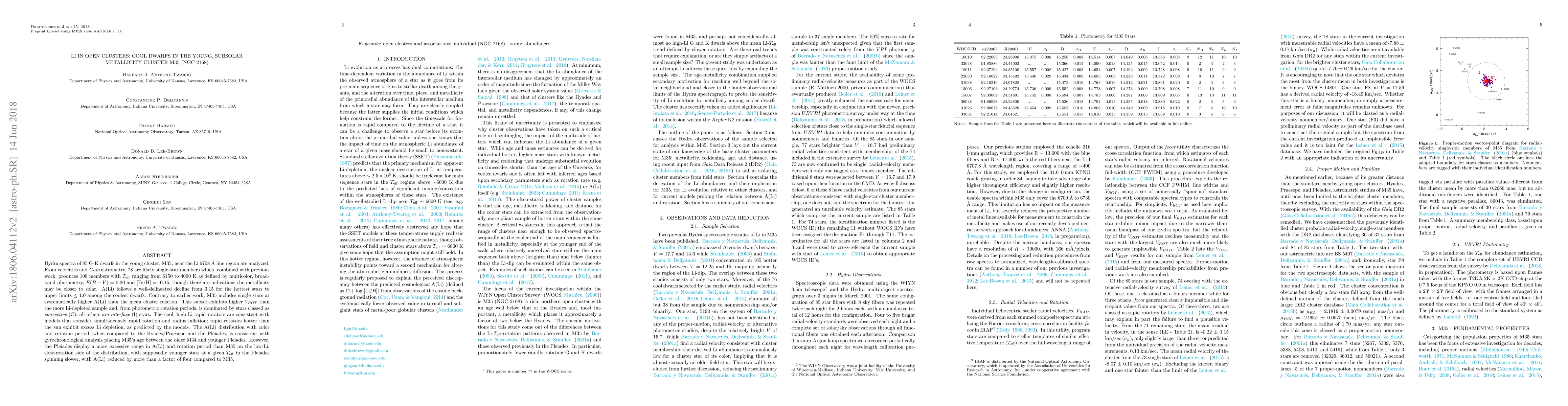 Research on the cluster M35 reveals a decline in Li abundance with decreasing star temperature, but unexpectedly, some stars have high Li levels despite being cool and rapidly rotating. This suggests rapid rotation can lead to excess Li depletion.