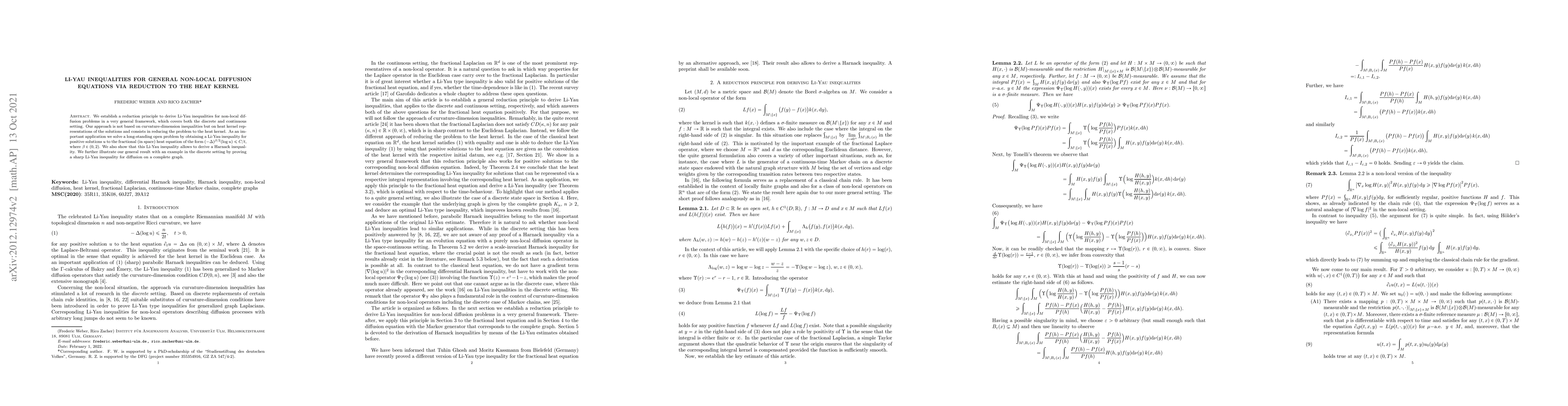 We establish a reduction principle to derive Li-Yau inequalities for non-local diffusion problems in a very general framework, which covers both the discrete and continuous setting. Our approach is not based on curvature-dimension inequalities but on heat kernel representations of the solutions and consists in reducing the problem to the heat kernel. As an important application we solve a long-standing open problem by obtaining a Li-Yau inequality for positive solutions $u$ to the fractional (in space) heat equation of the form $(-\Delta)^{\beta/2}(\log u)\leq C/t$, where $\beta\in (0,2)$. We also illustrate our general result with an example in the discrete setting by proving a sharp Li-Yau inequality for diffusion on a complete graph.