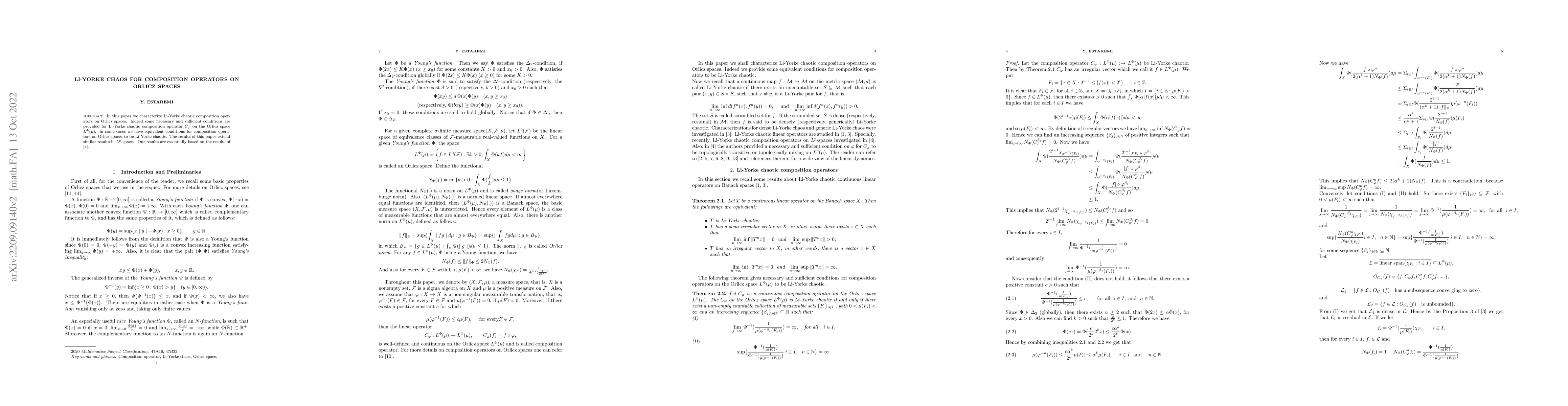 This paper characterizes Li-Yorke chaotic composition operators on Orlicz spaces, providing necessary and sufficient conditions for such operators on the Orlicz space Lp. The findings extend similar results from Lp-spaces and are fundamentally based on prior work referenced as [4].