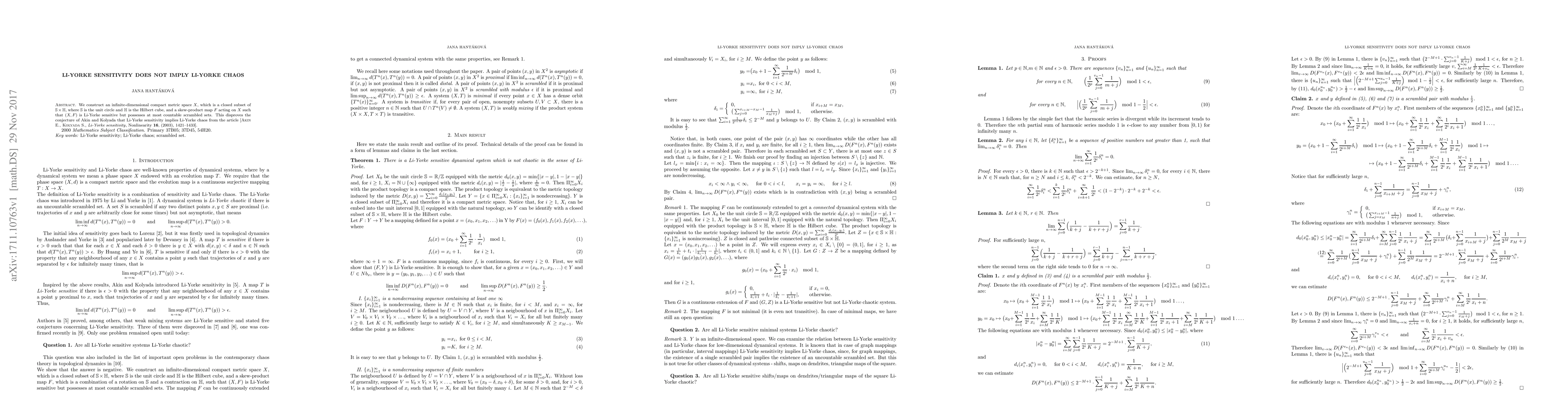 This paper constructs an example of an infinite-dimensional compact metric space with a skew-product map that is Li-Yorke sensitive but does not exhibit Li-Yorke chaos, thus disproving the conjecture that Li-Yorke sensitivity implies Li-Yorke chaos.