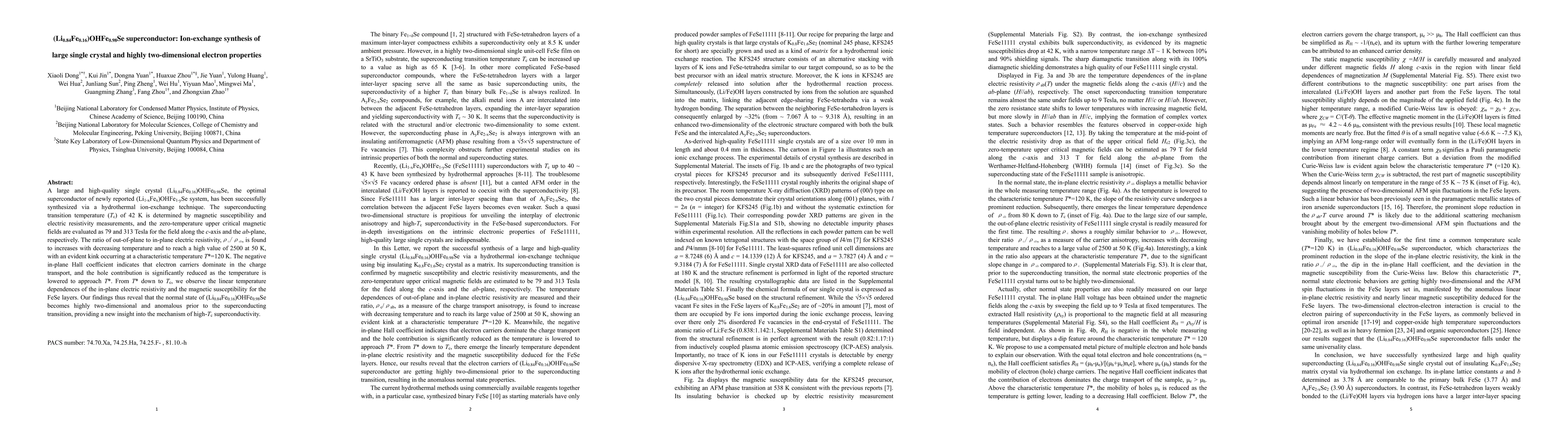 Researchers synthesized a high-quality single crystal of (Li0.84Fe0.16)OHFe0.98Se, revealing it to become highly two-dimensional before superconducting at 42 K.