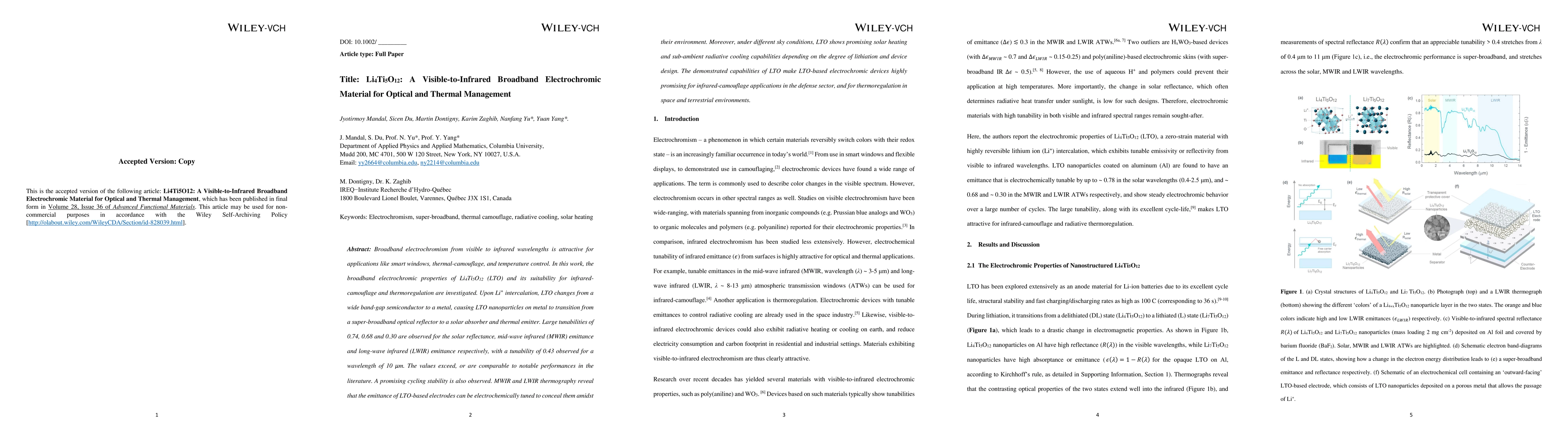 Researchers develop a new material called Li4Ti5O12 that can change its color from visible to infrared light when electrically charged, making it useful for applications like smart windows, camouflage, and temperature control.
