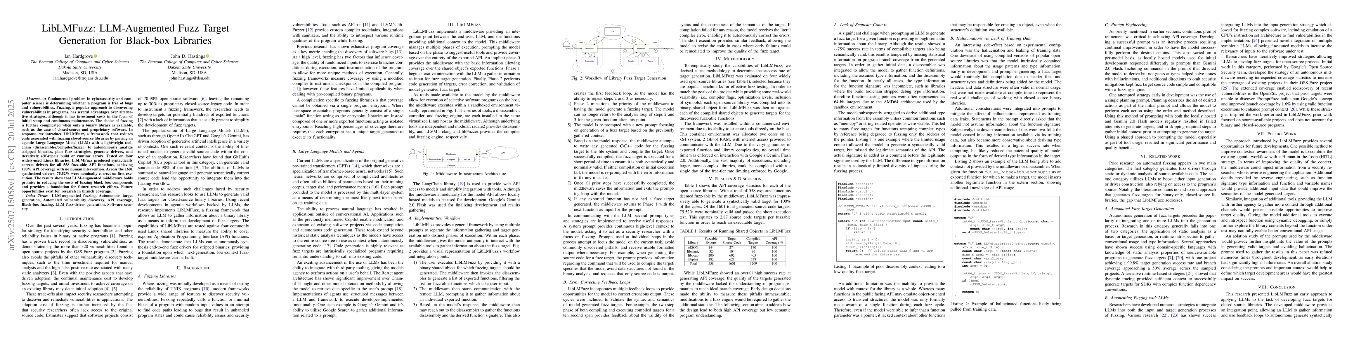 A fundamental problem in cybersecurity and computer science is determining whether a program is free of bugs and vulnerabilities. Fuzzing, a popular approach to discovering vulnerabilities in programs, has several advantages over alternative strategies, although it has investment costs in the form of initial setup and continuous maintenance. The choice of fuzzing is further complicated when only a binary library is available, such as the case of closed-source and proprietary software. In response, we introduce LibLMFuzz, a framework that reduces costs associated with fuzzing closed-source libraries by pairing an agentic Large Language Model (LLM) with a lightweight tool-chain (disassembler/compiler/fuzzer) to autonomously analyze stripped binaries, plan fuzz strategies, generate drivers, and iteratively self-repair build or runtime errors. Tested on four widely-used Linux libraries, LibLMFuzz produced syntactically correct drivers for all 558 fuzz-able API functions, achieving 100% API coverage with no human intervention. Across the 1601 synthesized drivers, 75.52% were nominally correct on first execution. The results show that LLM-augmented middleware holds promise in reducing the costs of fuzzing black box components and provides a foundation for future research efforts. Future opportunities exist for research in branch coverage.