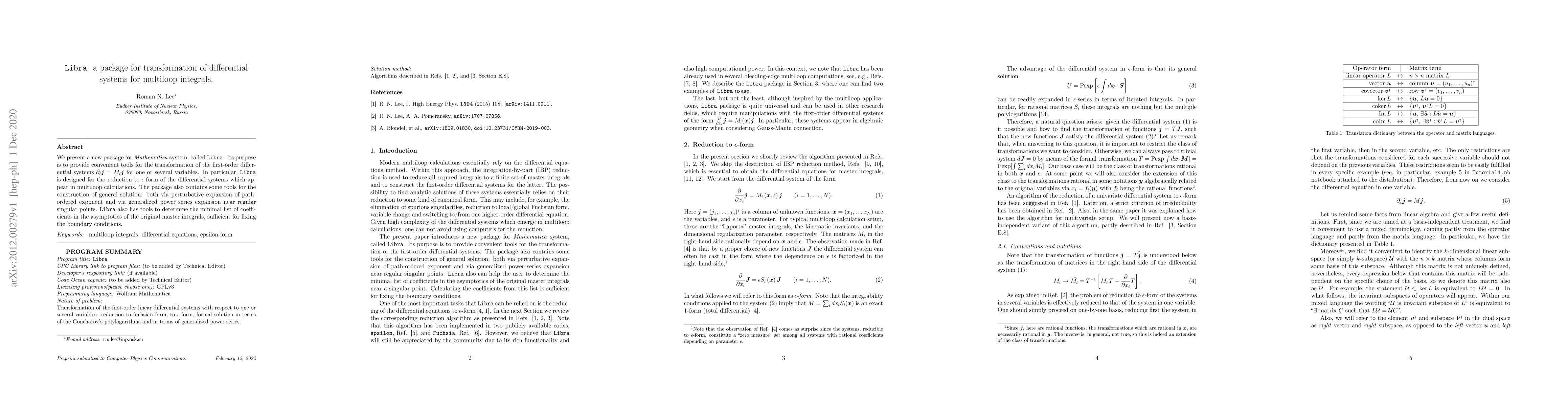 Libra is a Mathematica package that simplifies the transformation of differential systems for multiloop integrals, enabling more efficient calculations in physics and mathematics.