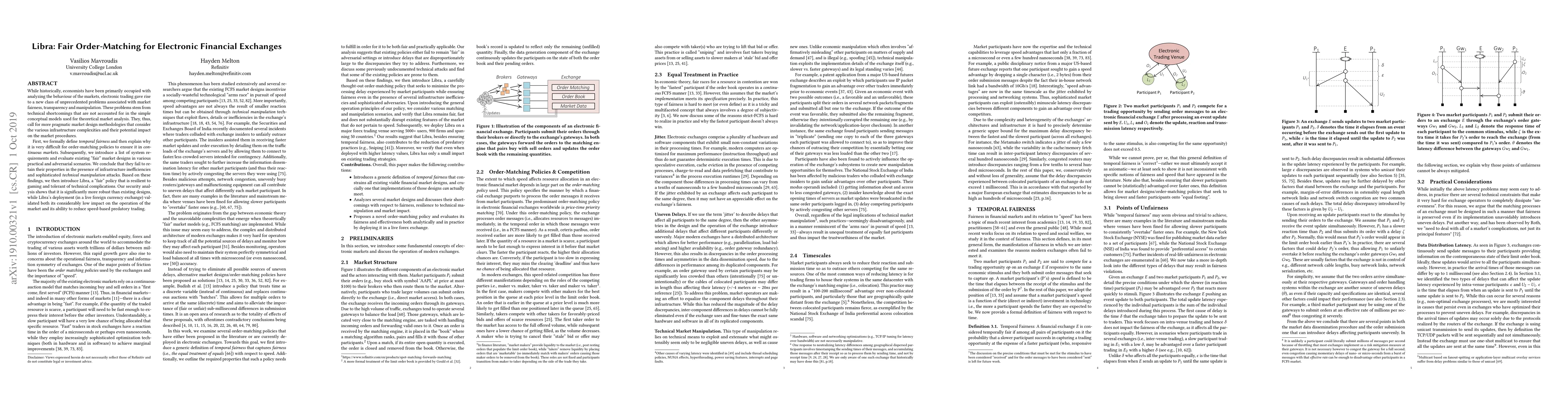 A new market design called Libra ensures fairness in electronic financial exchanges despite technical shortcomings, offering a more robust solution than existing designs.