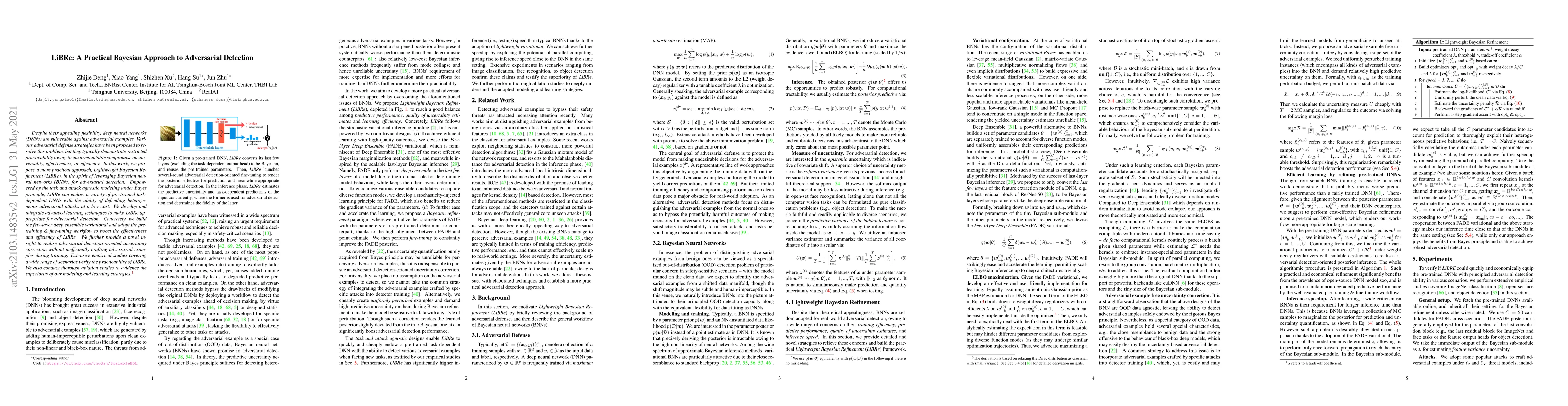Despite their appealing flexibility, deep neural networks (DNNs) are vulnerable against adversarial examples. Various adversarial defense strategies have been proposed to resolve this problem, but they typically demonstrate restricted practicability owing to unsurmountable compromise on universality, effectiveness, or efficiency. In this work, we propose a more practical approach, Lightweight Bayesian Refinement (LiBRe), in the spirit of leveraging Bayesian neural networks (BNNs) for adversarial detection. Empowered by the task and attack agnostic modeling under Bayes principle, LiBRe can endow a variety of pre-trained task-dependent DNNs with the ability of defending heterogeneous adversarial attacks at a low cost. We develop and integrate advanced learning techniques to make LiBRe appropriate for adversarial detection. Concretely, we build the few-layer deep ensemble variational and adopt the pre-training & fine-tuning workflow to boost the effectiveness and efficiency of LiBRe. We further provide a novel insight to realise adversarial detection-oriented uncertainty quantification without inefficiently crafting adversarial examples during training. Extensive empirical studies covering a wide range of scenarios verify the practicability of LiBRe. We also conduct thorough ablation studies to evidence the superiority of our modeling and learning strategies.