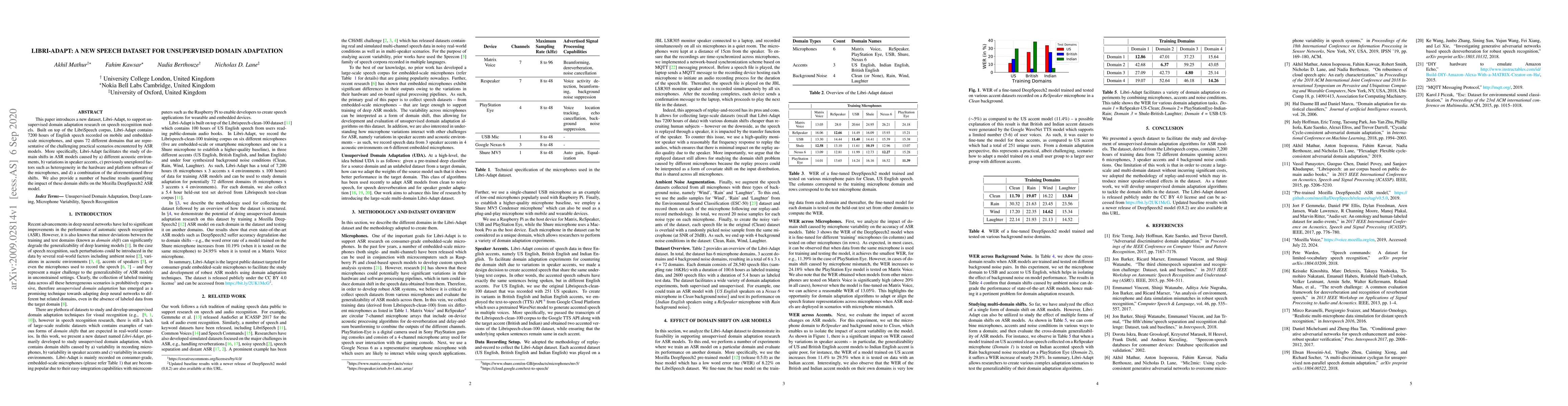 A new speech dataset called Libri-Adapt is introduced to study unsupervised domain adaptation in speech recognition models, covering 72 challenging domains and their impact on ASR accuracy.