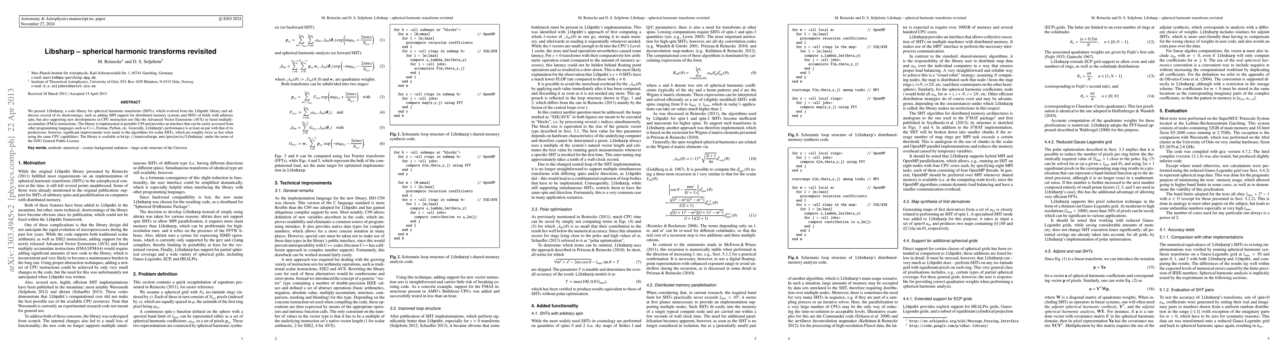 Researchers have developed a new library called libsharp for efficient computation of spherical harmonic transforms (SHTs), with improved performance and support for distributed memory systems.