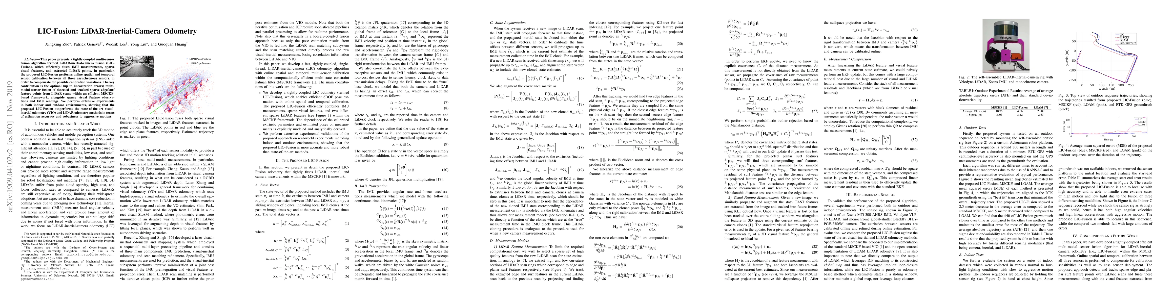 This paper introduces LIC-Fusion, a tightly-coupled algorithm that optimally integrates LiDAR, inertial, and camera data for odometry, achieving superior accuracy and robustness compared to existing visual-inertial and LiDAR odometry methods. The method includes online calibration and a multi-modal sensor fusion framework based on MSCKF.