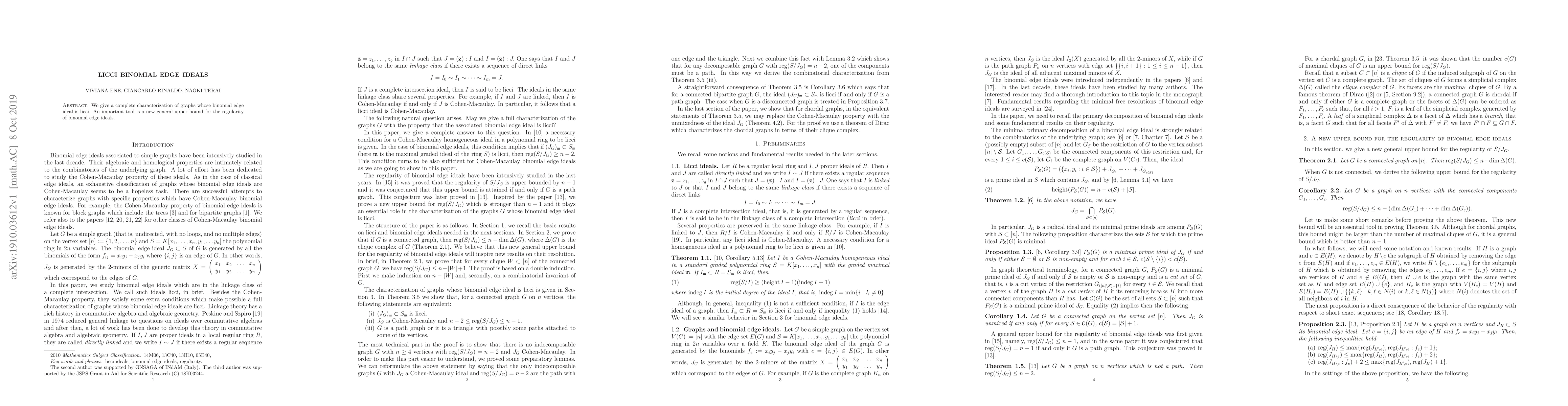 Summary: This research provides a comprehensive analysis of graphs with licci binomial edge ideals, utilizing a newly established upper bound for the regularity of binomial edge ideals as a critical tool in the characterization.