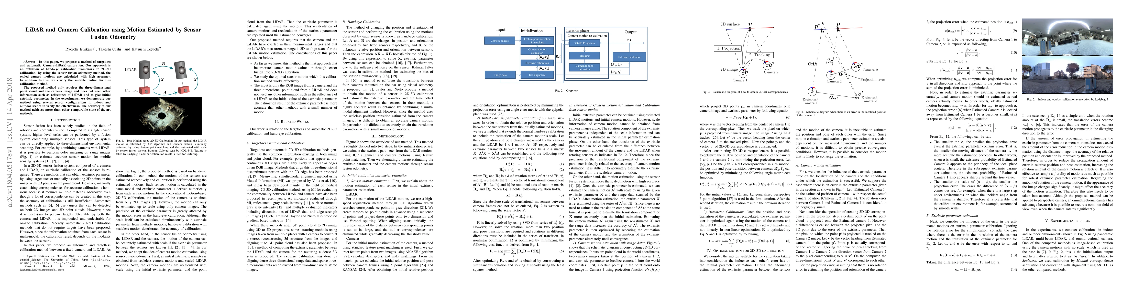 In this paper, we propose a method of targetless and automatic Camera-LiDAR calibration. Our approach is an extension of hand-eye calibration framework to 2D-3D calibration. By using the sensor fusion odometry method, the scaled camera motions are calculated with high accuracy. In addition to this, we clarify the suitable motion for this calibration method. The proposed method only requires the three-dimensional point cloud and the camera image and does not need other information such as reflectance of LiDAR and to give initial extrinsic parameter. In the experiments, we demonstrate our method using several sensor configurations in indoor and outdoor scenes to verify the effectiveness. The accuracy of our method achieves more than other comparable state-of-the-art methods.