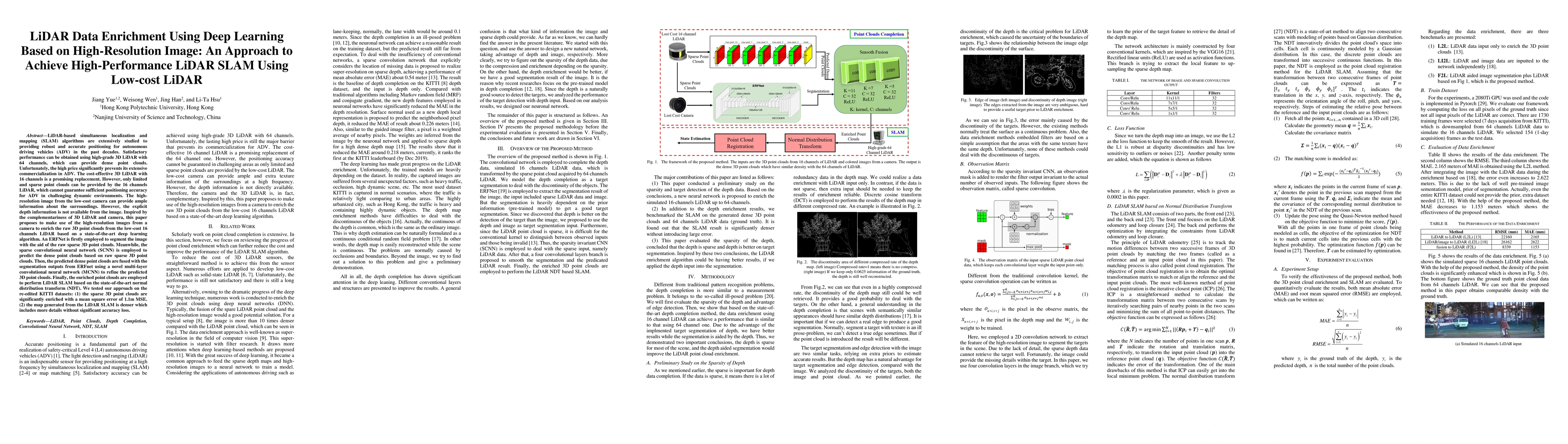 This paper proposes a deep learning-based method to enrich sparse 3D point clouds from low-cost 16-channel LiDAR using high-resolution images from a camera, aiming to achieve high-performance LiDAR SLAM for autonomous driving vehicles. The method employs ERFNet for image segmentation and a sparse convolutional neural network to predict dense point clouds, which are then refined using a multi-layer convolutional neural network and used in LiDAR SLAM with NDT.