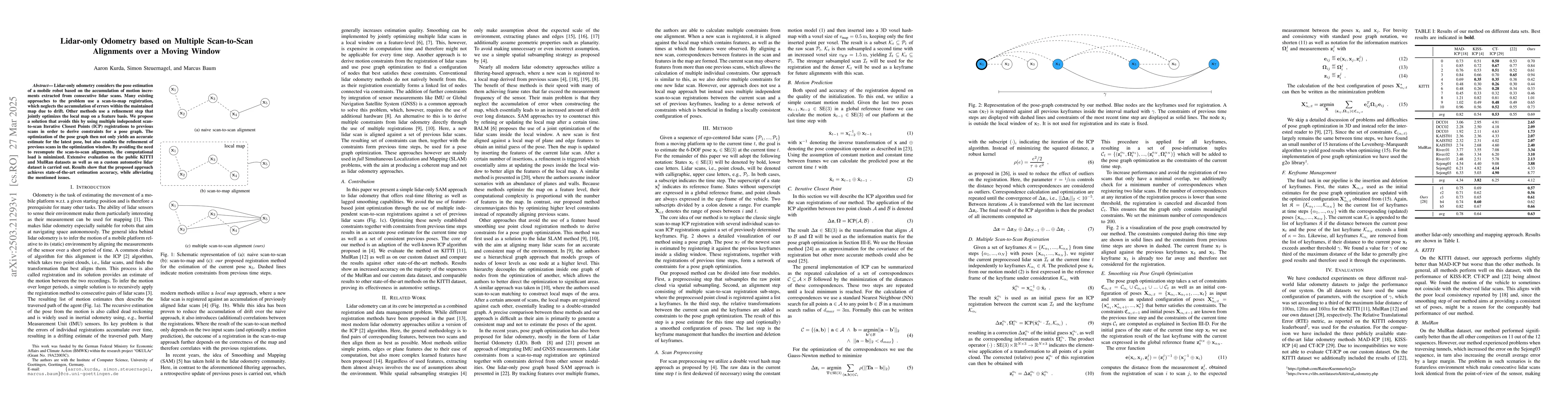 This paper proposes a lidar-only odometry method using multiple scan-to-scan ICP alignments over a moving window to derive pose graph constraints, minimizing computational load and achieving high estimation accuracy while refining previous scans. Evaluation on multiple datasets demonstrates state-of-the-art performance.