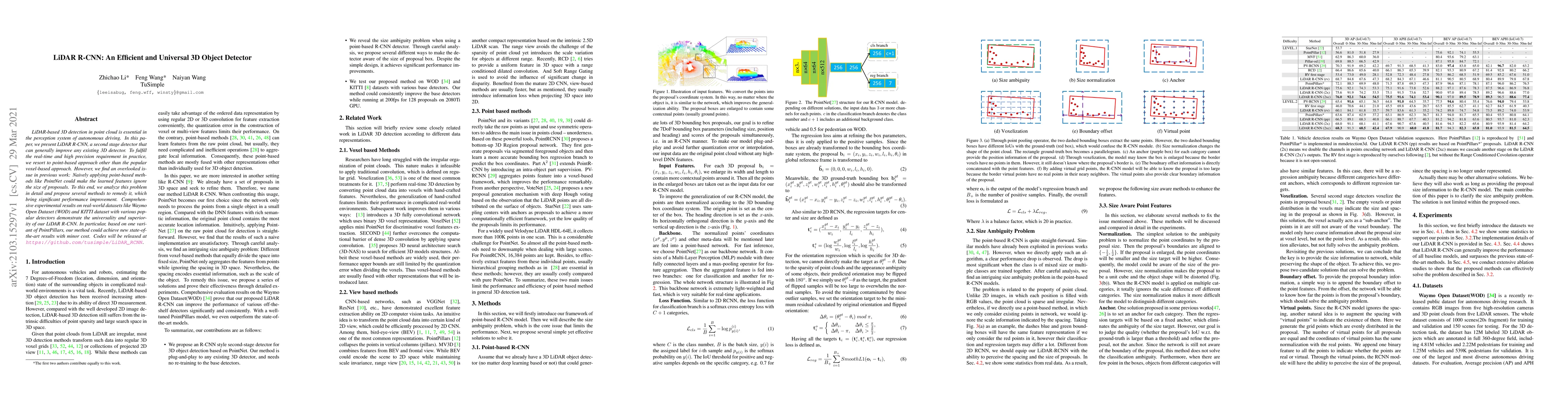 LiDAR R-CNN improves 3D object detection with point-based approach, achieving state-of-the-art results on popular datasets while addressing size proposal issue in previous methods.