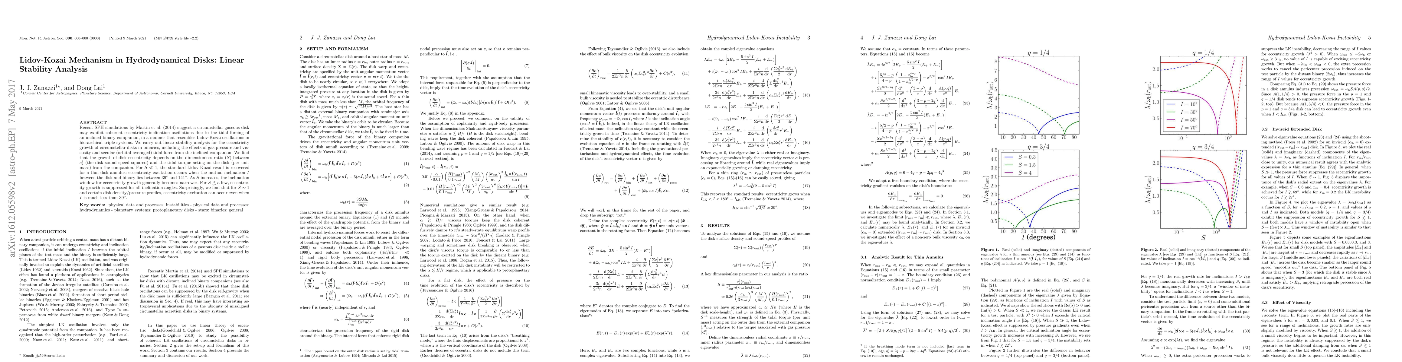 This paper investigates the linear stability of circumstellar gaseous disks in binary systems, revealing that eccentricity oscillations can occur due to tidal forces from an inclined companion, akin to Lidov-Kozai oscillations. The study finds that eccentricity growth depends on the ratio of disk sound speed squared to tidal torque, with eccentricity excitation suppressed for larger ratios and surprisingly occurring at smaller inclinations for a ratio around 1.