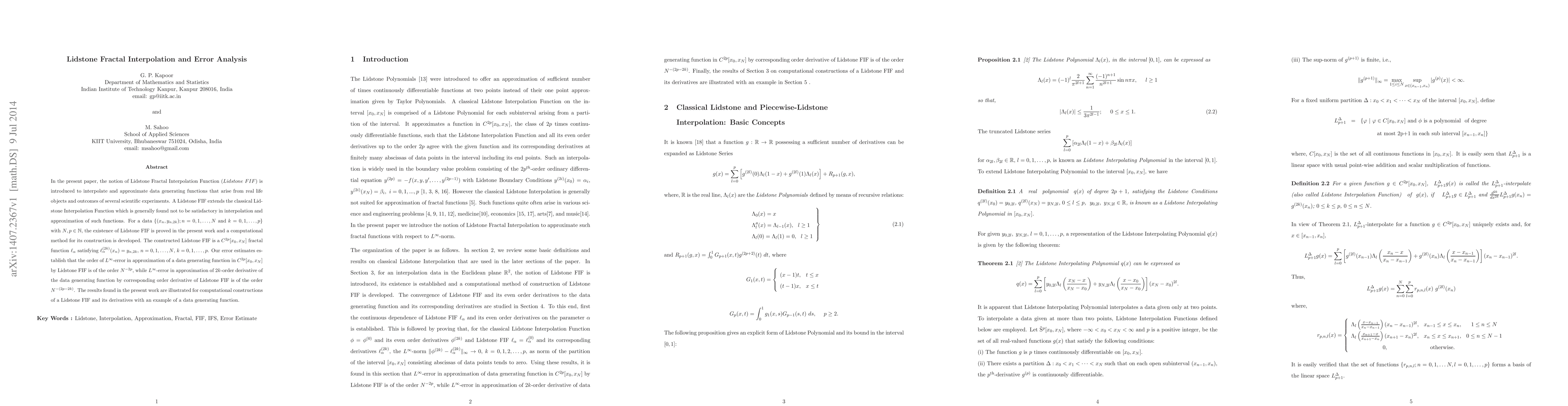 The paper presents the Lidstone Fractal Interpolation Function (LIF), proves its existence, and provides a computational method for its construction, along with error estimates for its approximation capabilities.