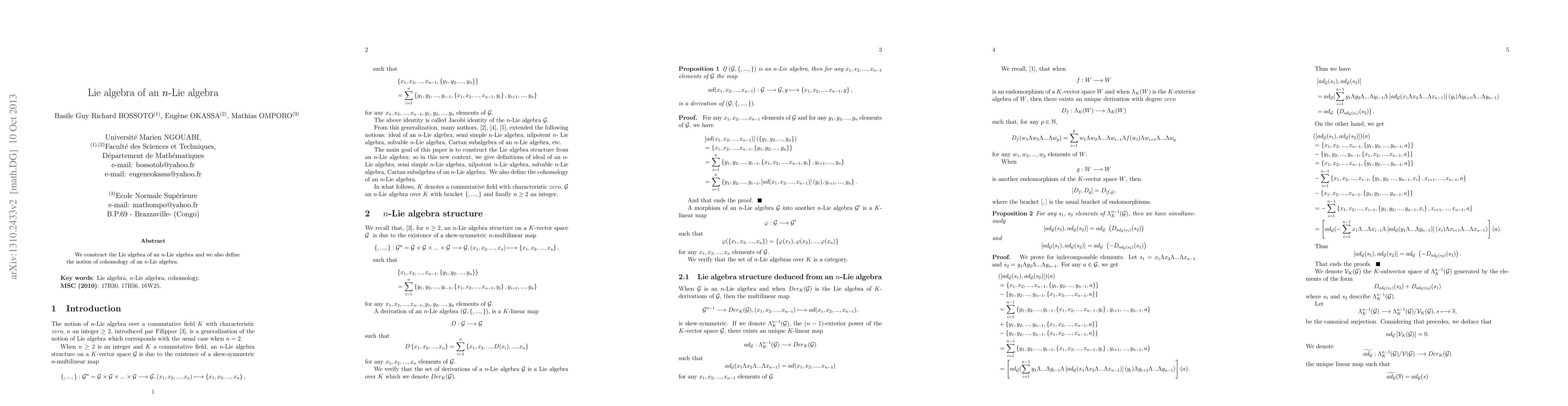 Summary: This paper constructs the Lie algebra associated with an n-Lie algebra and introduces the concept of cohomology for n-Lie algebras, providing a framework for further study in this area.
