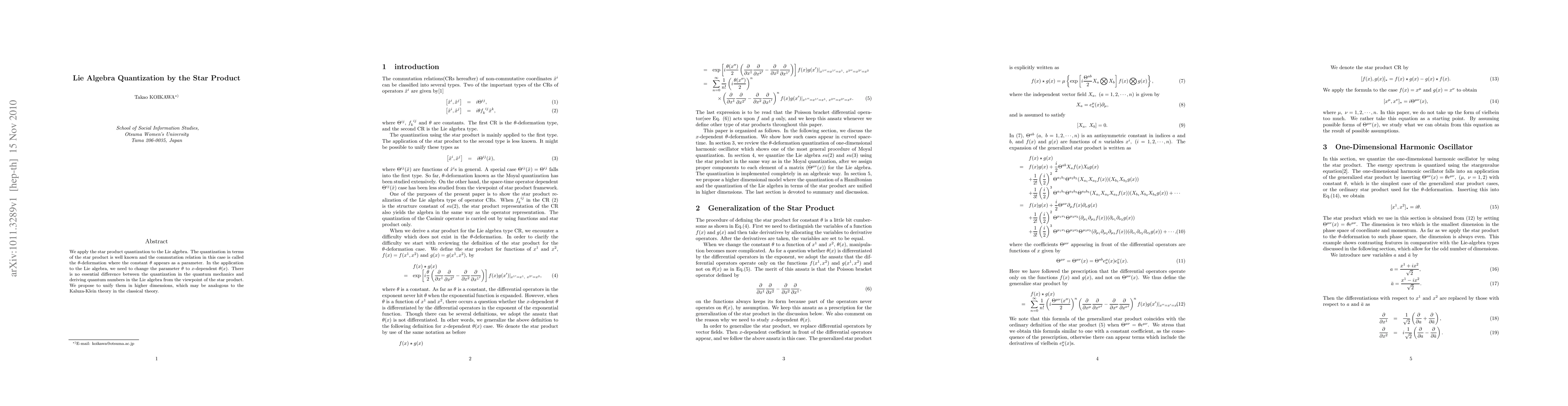 This paper explores the application of star product quantization to Lie algebras, introducing an $x$-dependent deformation parameter $\theta(x)$ instead of a constant $\theta$. It proposes a unification of quantum mechanics and Lie algebra quantum numbers through the star product, suggesting a higher-dimensional analogy to the Kaluza-Klein theory.