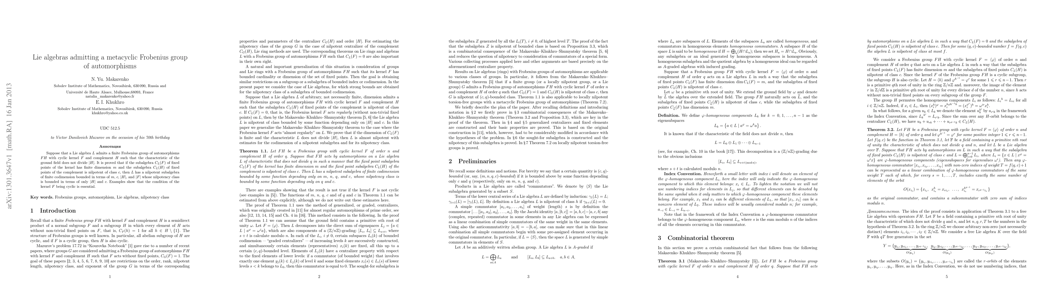 This paper proves that a Lie algebra admitting a metacyclic Frobenius group of automorphisms, where the kernel is cyclic, possesses a nilpotent subalgebra of finite codimension, with its nilpotency class and codimension bounded by specific group-theoretic parameters. The cyclic nature of the kernel is shown to be crucial through provided examples.