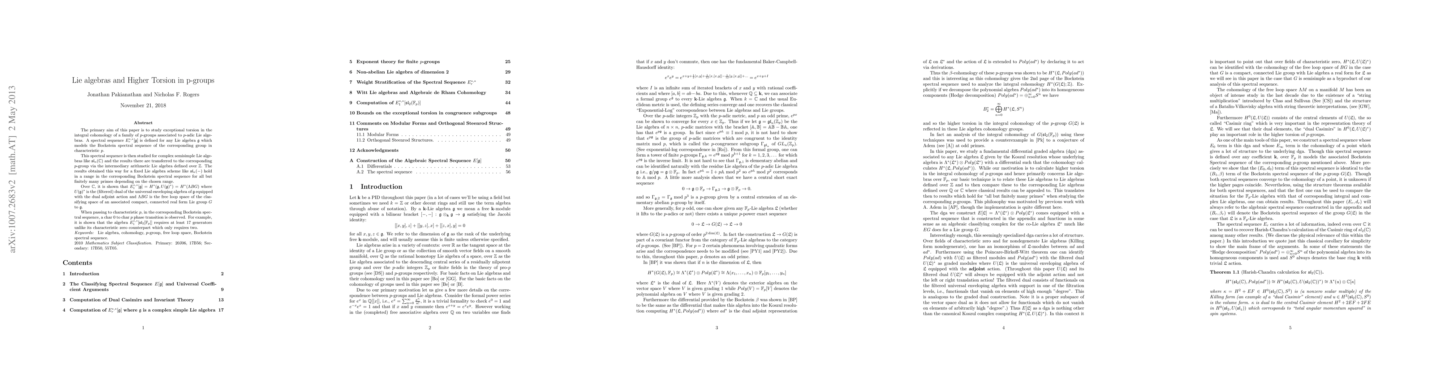 We study exceptional torsion in the integral cohomology of a family of p-groups associated to p-adic Lie algebras. A spectral sequence E_r^{*,*}[g] is defined for any Lie algebra g which models the Bockstein spectral sequence of the corresponding group in characteristic p. This spectral sequence is then studied for complex semisimple Lie algebras like sl_n(C), and the results there are transferred to the corresponding p-group via the intermediary arithmetic Lie algebra defined over Z. Over C, it is shown that E_1^{*,*}[g]=H^*(g,U(g)^*)=H^*(\Lambda BG) where U(g)^* is the dual of the universal enveloping algebra of g and \Lambda BG is the free loop space of the classifying space of a Lie group G associated to g. In characteristic p, a phase transition is observed. For example, it is shown that the algebra E_1^{*,*}[sl_2[F_p]] requires at least 17 generators unlike its characteristic zero counterpart which only requires two.
