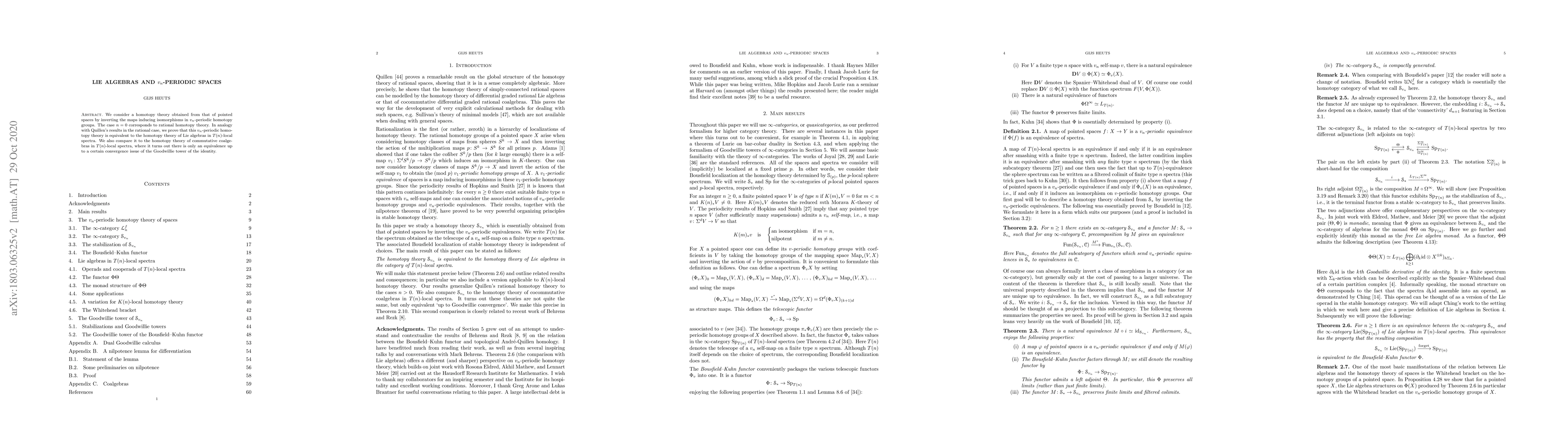 This paper develops a $v_n$-periodic homotopy theory by inverting maps inducing isomorphisms in $v_n$-periodic homotopy groups, showing its equivalence to the homotopy theory of Lie algebras in T(n)-local spectra, similar to Quillen's rational homotopy theory results. It also discusses a convergence issue in the comparison with commutative coalgebras.