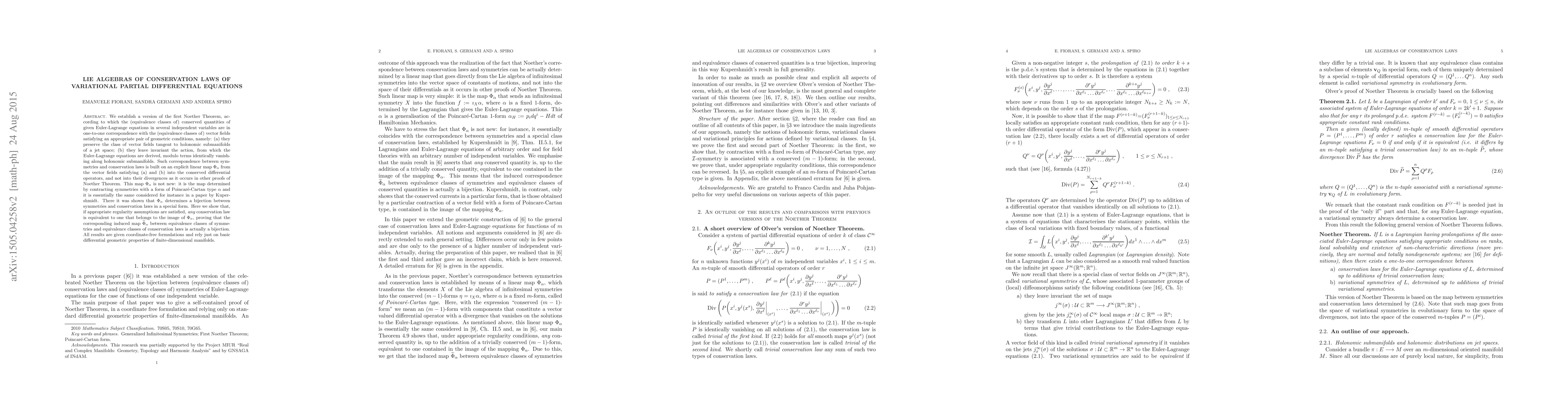 This paper establishes a correspondence between symmetries and conservation laws in variational partial differential equations, proving that the Noether Theorem holds in a new form with an explicit linear map.
