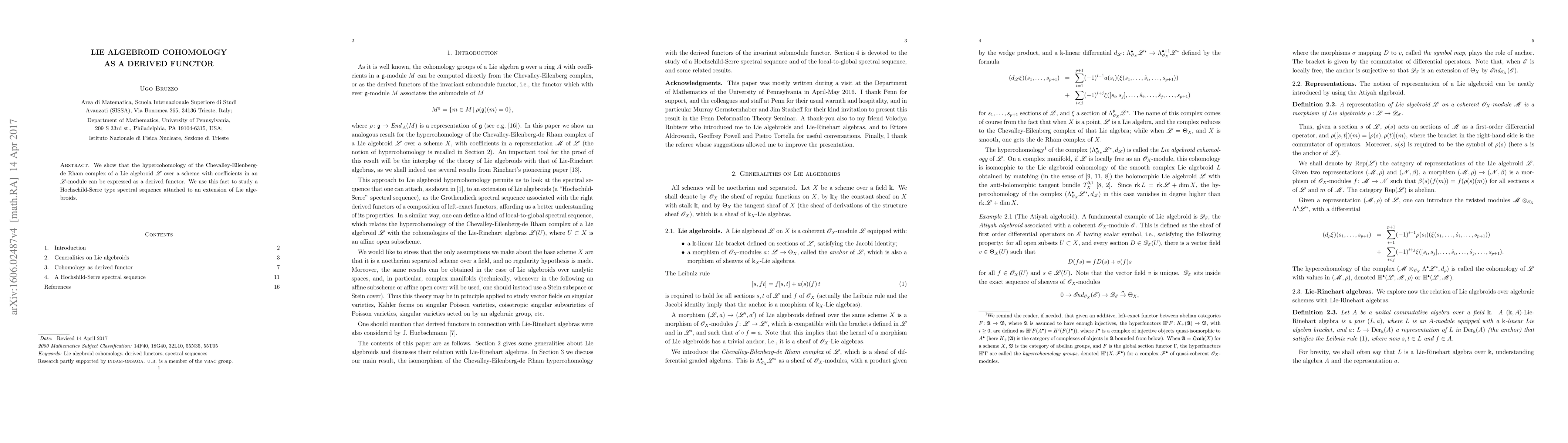 We show that the hypercohomology of the Chevalley-Eilenberg-de Rham complex of a Lie algebroid L over a scheme with coefficients in an L-module can be expressed as a derived functor. We use this fact to study a Hochschild-Serre type spectral sequence attached to an extension of Lie algebroids.