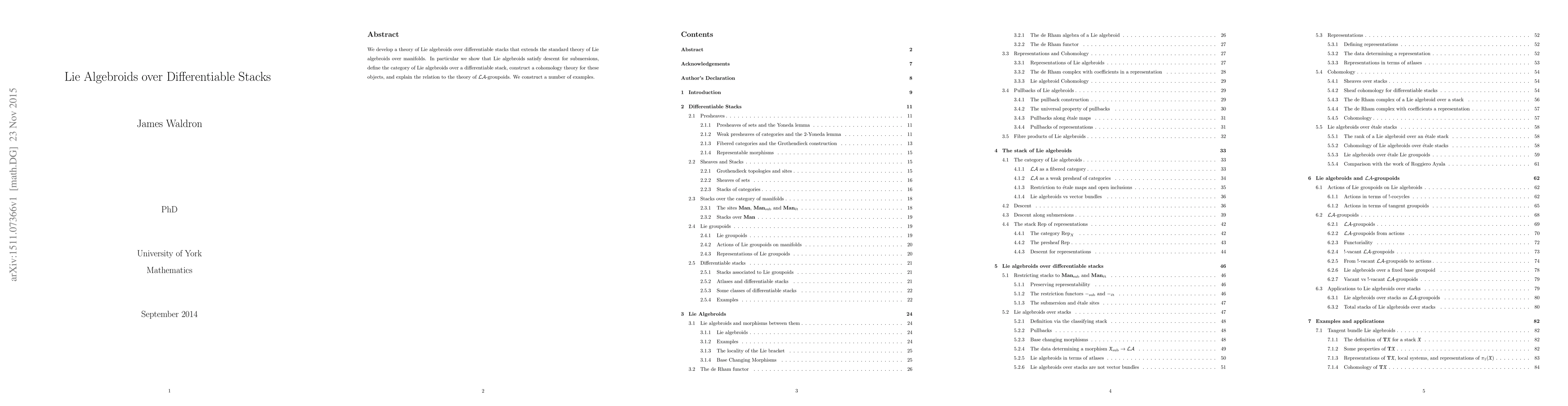This paper extends the theory of Lie algebroids to differentiable stacks, proving descent for submersions, defining the corresponding category, constructing a cohomology theory, and linking it to $\mathcal{LA}$-groupoids, with several illustrative examples provided.